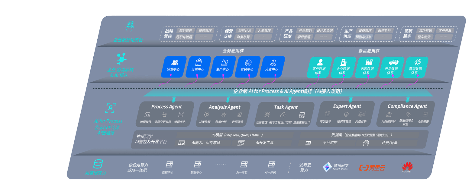 端到端的一站式AI工作空间深度融合了从企业战略规划到日常经营的全流程业务板块,,定向解决车企内部领域多、、、、部门多、、、、链条长、、、、场景碎片化等难题,,支持车企快速构建以AI为核心的生产力写作体系,,实现任务执行与AI能力的无缝集成与交互